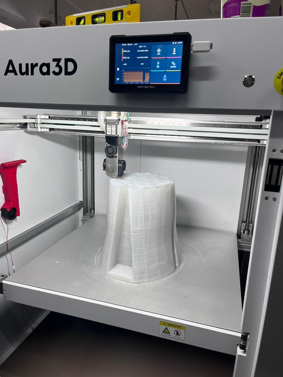 Aura3D A12 est une imprimante 3D à granulés haute vitesse et grand format de référence, basée sur une architecture CoreXY permettant d’atteindre des vitesses d’impression jusqu’à 600 mm/s, y compris avec des matériaux techniques. Elle peut imprimer des matériaux comme le PP, PA-CF, PC-CF, PEEK, etc. grâce à sa buse haute température A12. Son extrudeur de nouvelle génération, développé en interne, garantit un flux d’extrusion régulier et une excellente compatibilité avec les matériaux techniques. L’imprimante est conçue pour aider les utilisateurs industriels à réaliser rapidement et à moindre coût des prototypes et pièces de grande taille en matériaux techniques.